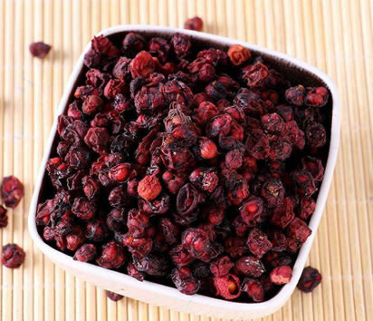 为木兰科植物五味子Schisandra chinensis(Turcz.)Baill.的干燥成熟果实。习称「北五味子」。分布于黑龙江、吉林、辽宁、内蒙古、河北、山西、宁夏、甘肃、山东等地。具有收敛固涩,益气生津,补肾宁心之功效。常用于久嗽虚喘,梦遗滑精,遗尿尿频,久泻不止,自汗盗汗,津伤口渴,内热消渴,心悸失眠。